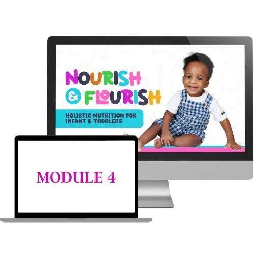 This is where the fun begins!!! This module teaches you how to intentionally introduce foods (6-24 months) in a careful manner that nourishes and supports overall health. You also learn a lot about Baby first foods, a guide to understanding and preventing constipation, introducing gluten, how to prevent choking. This module is packed with lots of lessons for you.