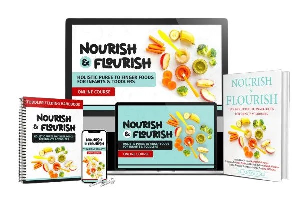 Believe me, I understand what you need. I was also stressed out as a first-time mom looking for a better nutrition approach to feed my son. Many nights of research and passion for children’s health and wellness led me to create the Nourish & Flourish Holistic Nutrition Course for Infants & Toddlers.
